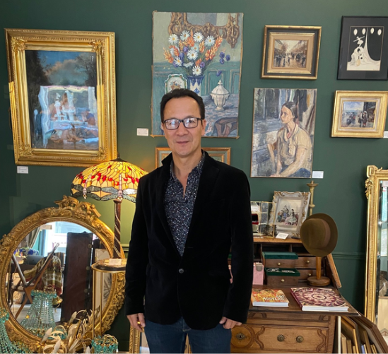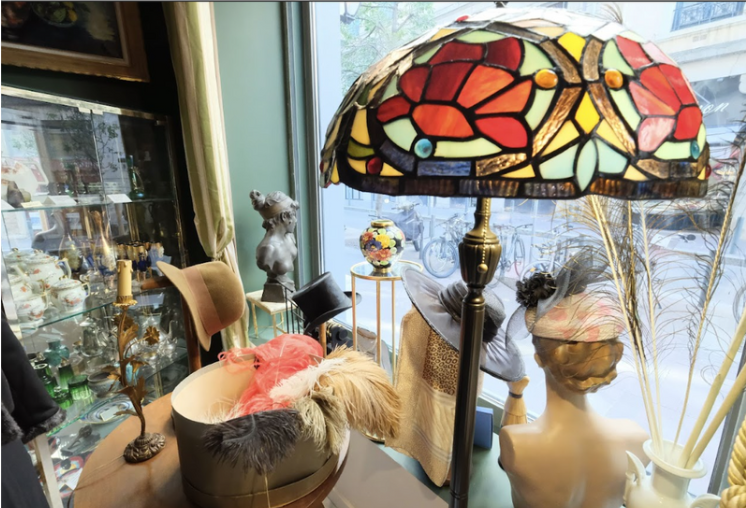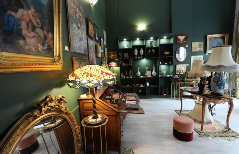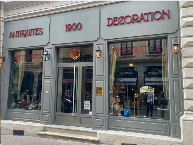 Boutique d’Antiquités et de Décoration conceptuelle proposant de nombreux articles anciens mais aussi contemporains tels que Tableaux et Cadres (Ecole Lyonnaise et Française…), Sculptures ( Bronze et Régules ), Vases en porcelaine et Verrerie d’art (Gallé, Sèvres, Limoges…), Cristal, Luminaires anciens et contemporains (style Tiffany et tout autre luminaire – catalogue sur place ), Abat-jour en soie (fabrication française), Nappes en dentelles, Tapis anciens noués mains (Persans, Pakistan…), Montres anciennes, Bijoux et Boîtes à bijoux, Cannes de marche ou à système, Chapeaux anciens, Robes (essentiellement Couture) et autres vêtements, Echarpes et Foulards, Sacs en cuir, et divers autres objets anciens